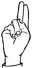 На ћирилици написано БОРИСАВА СЕБИЋ састоји се из 13 слова [?]. Исписано ћириличном једноручном азбуком за глувонеме: